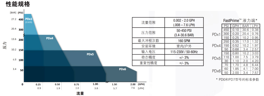 ●最大流量可達7.57L/H(2GPH),; 最大壓力可達306bar(450PSI)