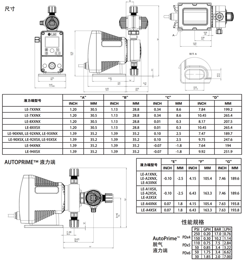 ●AutoPrime"液力端( 選配), 專為脫氣液體而設計(有關性能規格請參閱第4頁)