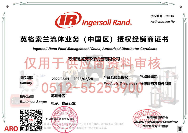 蘇州瑞晟茂環保設備有限公司是美國英格索蘭ARO氣動隔膜泵公司在中國正式授權的代理商。ARO英格索蘭氣動隔膜泵有不銹鋼、鋁合金、塑料及純特氟龍等材質的泵體,特氟龍,山道橡膠和一般橡膠等膜片,口徑范圍從2分至3寸;流量范圍18升至1040升每分鐘。有關的技術參數及價格,歡迎廣大客戶致電0512-57664099