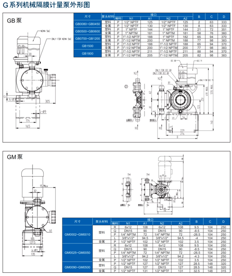 米頓羅GM系列機械隔膜泵型號表: