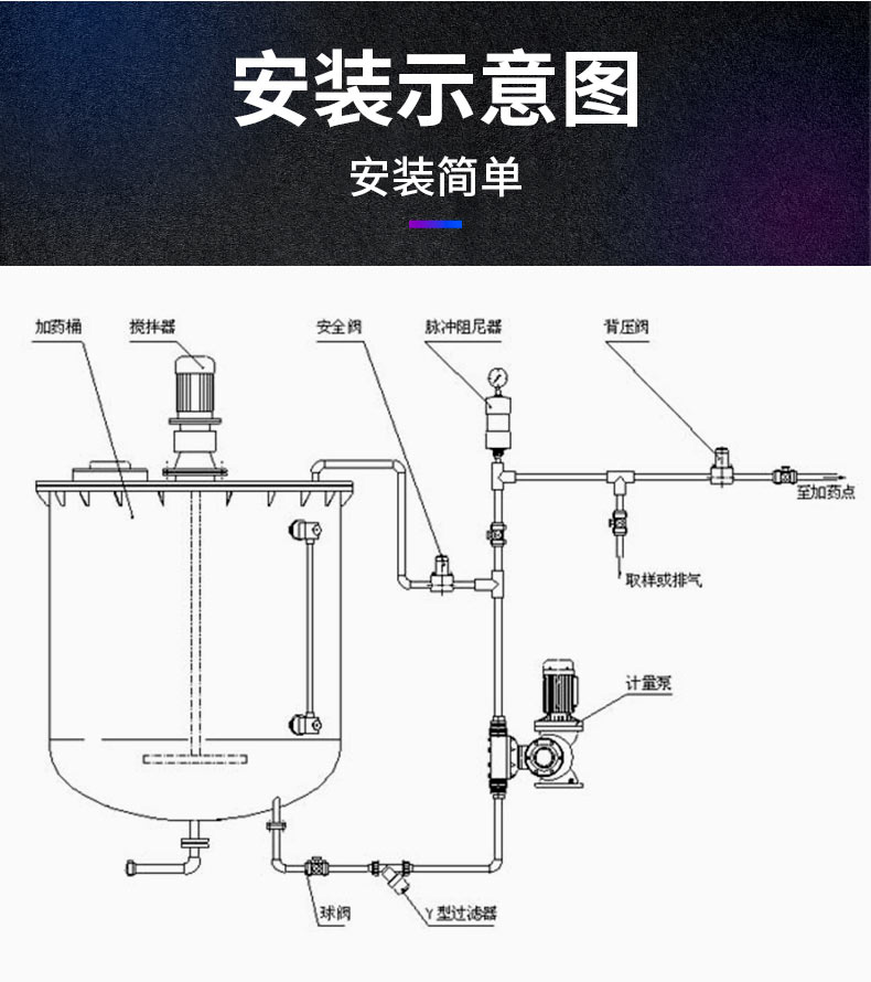 提供系統所需附件如 : 過濾器、 校正柱、 緩沖器、 安全閥和背壓閥等, 其中安全閥為必選項。(GM0002~GM0050范圍 PVC/PVDF泵頭的泵, 隨計量泵提供注射閥、 腳閥、 配重和 6米軟管, 高粘度泵頭除外)